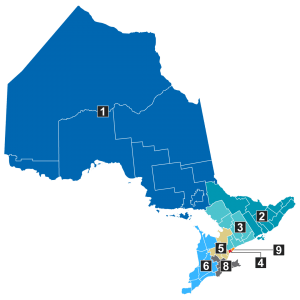- Composed of Kenora, Rainy River, Thunder Bay, Cochrane, Algoma, Manitoulin, Sudbury and Timiskaming.